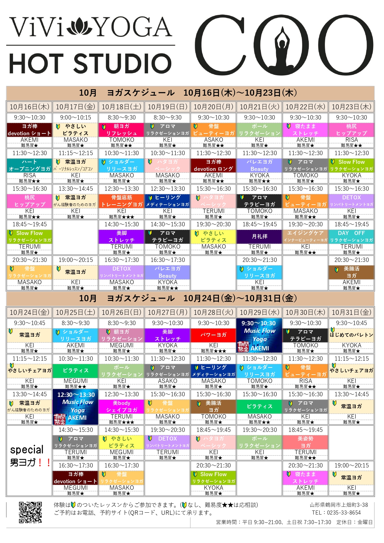 ホットヨガスケジュール 10月16日~10月31日