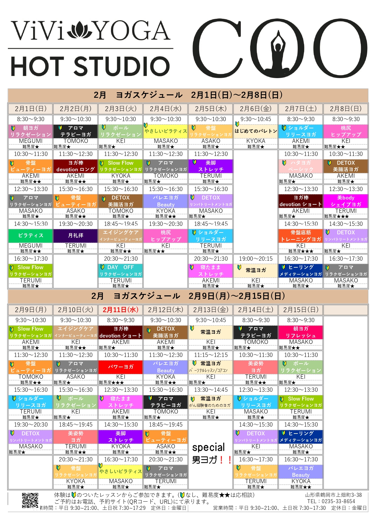 ホットヨガスケジュール 2月1日~15日