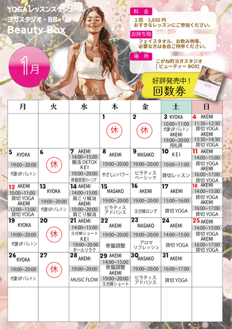 1月「Beauty Box ヨガスケジュール」